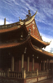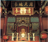 大成殿內中央的神龕,彫琢精細,龕內供置至聖先師孔子牌位 Inside the Tacheng Hall:delicately carved wood. Inside the delicately carved wood:Confucius monument. |