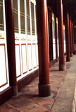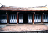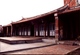 本圖是東廡的一角, 東西兩廡位在大成殿前的左右兩側, 廡內陳設先賢的神位, 因該廟清代時為彰化縣學, 不得仿照府學而建造四合院故東西兩廡與戟門. 後殿並不相連 |