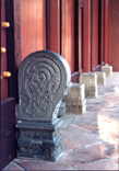 戟門的抱鼓石,使用螺絲圖案,雕琢精美 An exquisitely carved stone of Jii Door. | ||