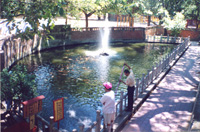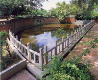泮池 居大成門之前,向外彎曲作半月狀的水池,因古禮天子太學有學宮稱辟雍,四週環水; 諸候之學只能南面半水,故稱泮宮。孔子曾受封文宣王,孔子廟又與郡縣之學並立,故泮池為其規制。昔日士人中了秀才,即稱入泮; 謁祭聖廟時,採泮池中水草插於帽上,則稱「采芹」,以示文才。今池畔壁中嵌有「思樂泮水」石刻。 |