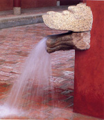 散水螭首 清代石刻,嵌於大成殿臺基四角,為洩水流口,散水時姿態、造形至美。又稱鰲首,有獨占鰲頭之意。 |