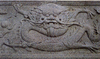 螭陛 花岡石質,縱103公分,橫387公分,新刻石作,位於露臺之前。螭,龍子也,孔子曾受封文宣王,得以龍來配享帝王之尊榮; 四週雕刻琴、棋、書、畫,代表著文明與才藝。 |