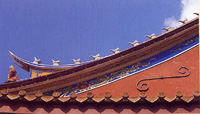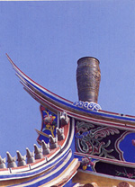 藏經筒 陶製,樹立於大成殿正脊兩側,用以紀念逃避秦始皇焚書而藏匿經書的典故; 或稱「通天柱」,象徵孔子德配天地、道貫古成。 |