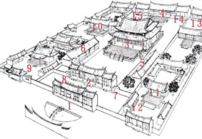 | 圖例 1.櫺星門 2.戟門 3.大成殿 4.崇聖祠 5.東廡 6.西廡 7.義路 8.禮門 9.白沙書院 10.教諭署 11.明倫堂 12.福德祠 13.學廨 14.名宦祠 15.鄉賢祠 |